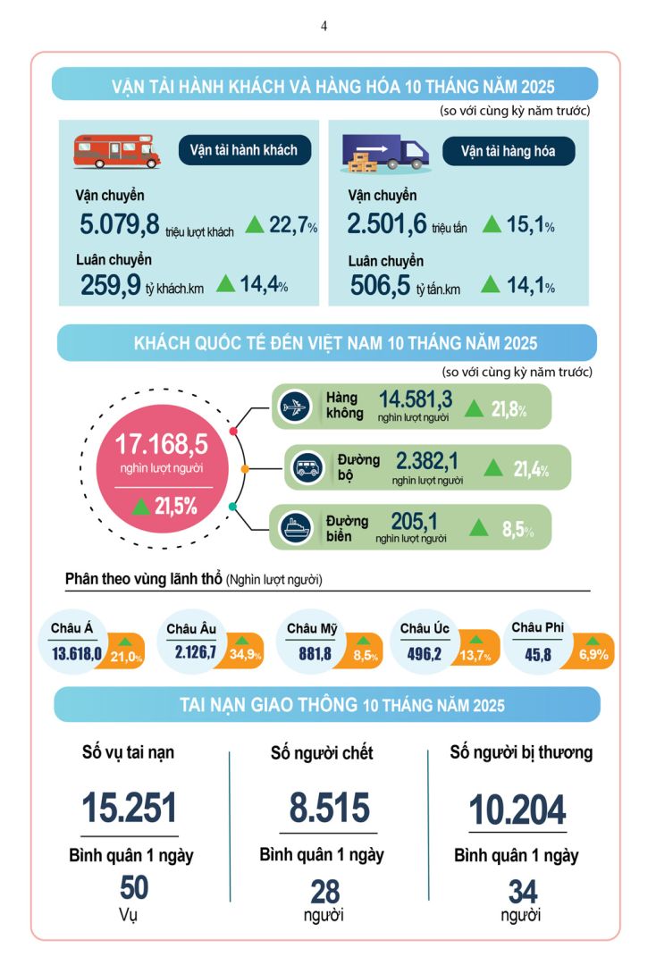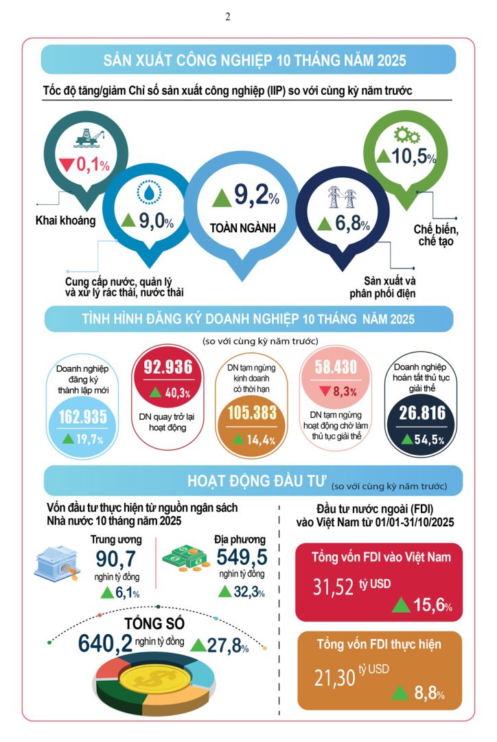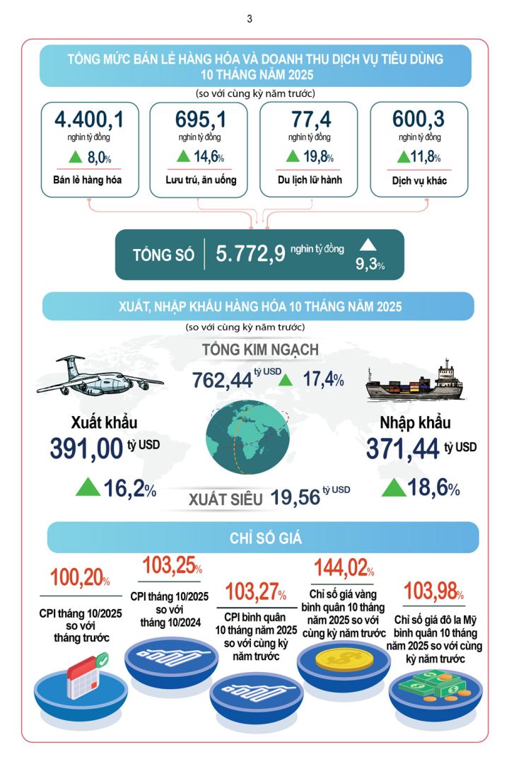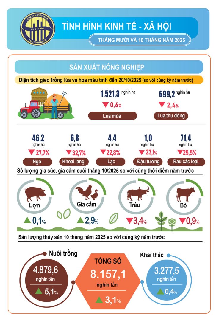 Số liệu tình hình kinh tế - xã hội tháng 10 và 10 tháng năm 2025 của Cục Thống kê