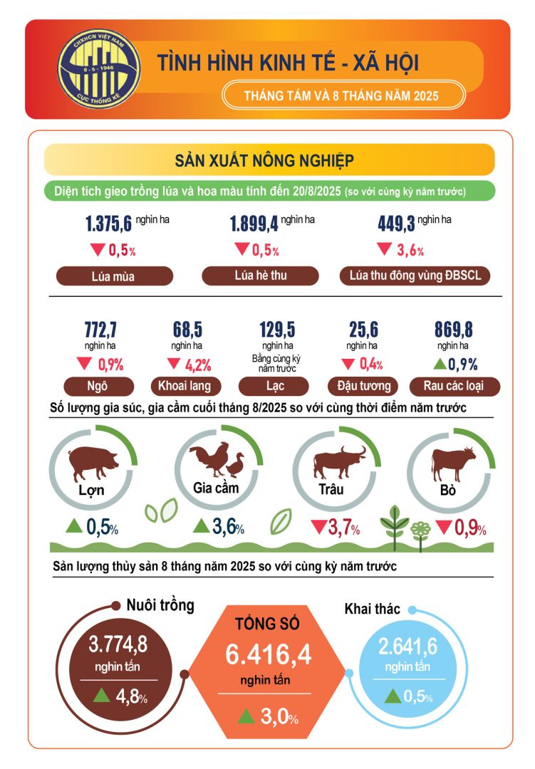 Số liệu tình hình kinh tế - xã hội tháng 8 và 8 tháng năm 2025 của Cục Thống kê