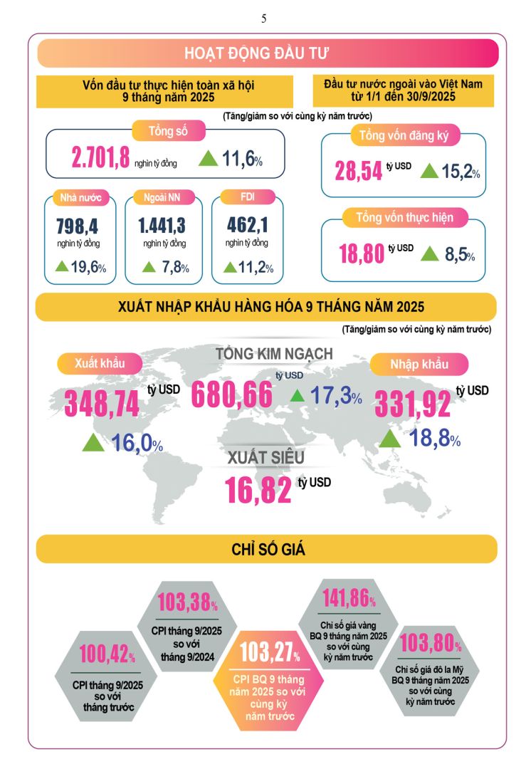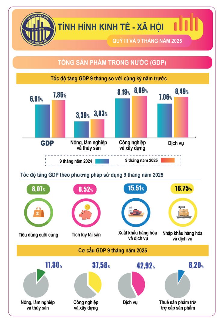 Số liệu tình hình kinh tế - xã hội tháng 9 và quý III năm 2025 của Cục Thống kê